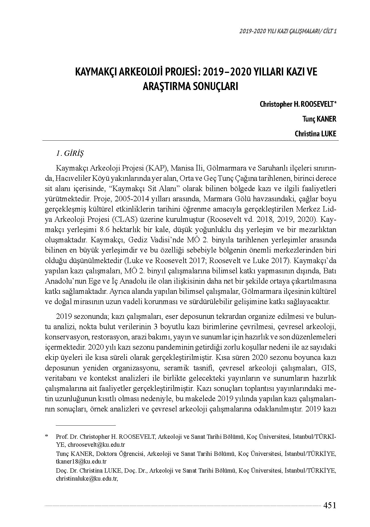 Kaymakçı Archaeological Project 2019-2020 (Roosevelt, Kaner, and Luke 2022)